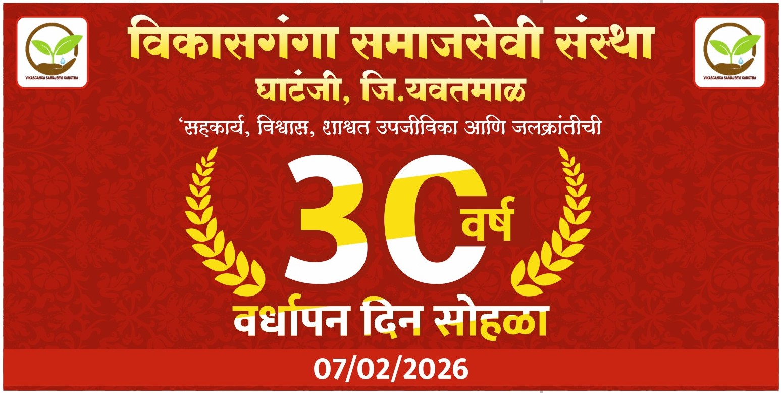 Vikasganga Samajsevi Sanstha is a registered, non-governmental, non-profit, voluntary organization was founded by a group of social activists in 1996with the specific objectives to solve the Livelihood, NRM and Educational issues, which are greatly interlinked. It is registered under Societies Registration act and also under Bombay Public Trust act. It has a General body and Executive committee comprising of 12 and 7 members respectively. Its present area of operation Vikasganga Sanstha reaches out to 1,58,000 households across 1050 villages of 40 blocks in the seven distressed districts as Yavatmal, Amravati, Wardha, Chandrapur, Hingoli, Ahmednagar and Nashik in Maharashtra.